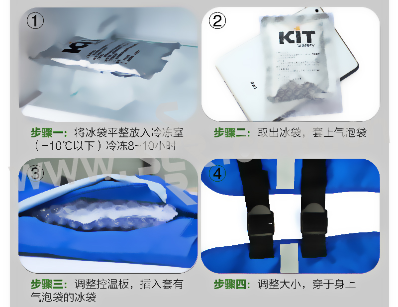 ·使用前,需自行放入冰箱冷冻,待冷冻之后,放入降温背心,大概可维持2小时