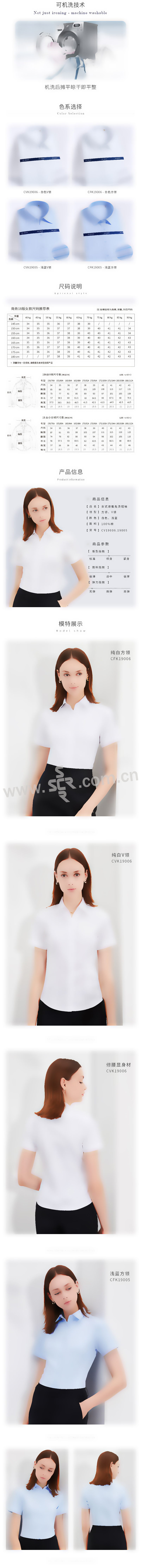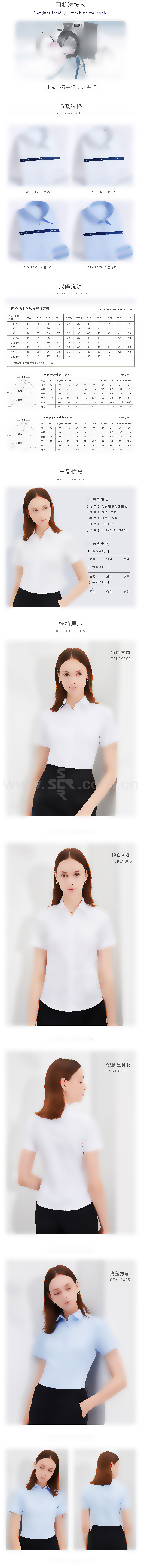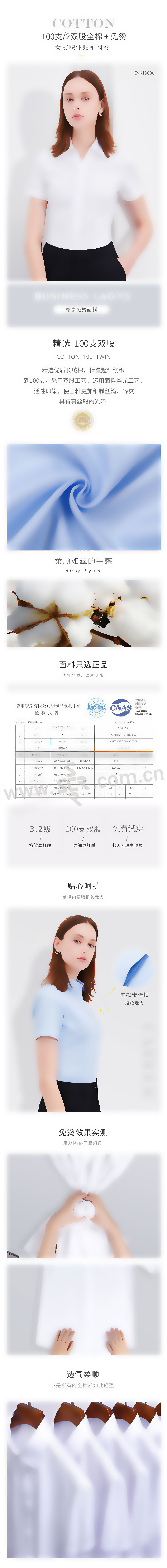ZHUANG/庄 纯棉液氨免烫女士职业短袖衬衣 CVK19006 160/84A 白色 1件