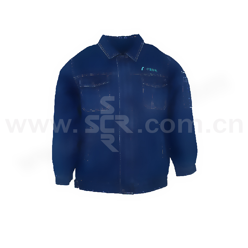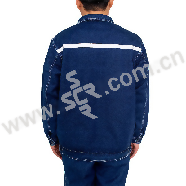 ·春秋季纯棉牛仔工作服套装,带反光条,靛蓝色。