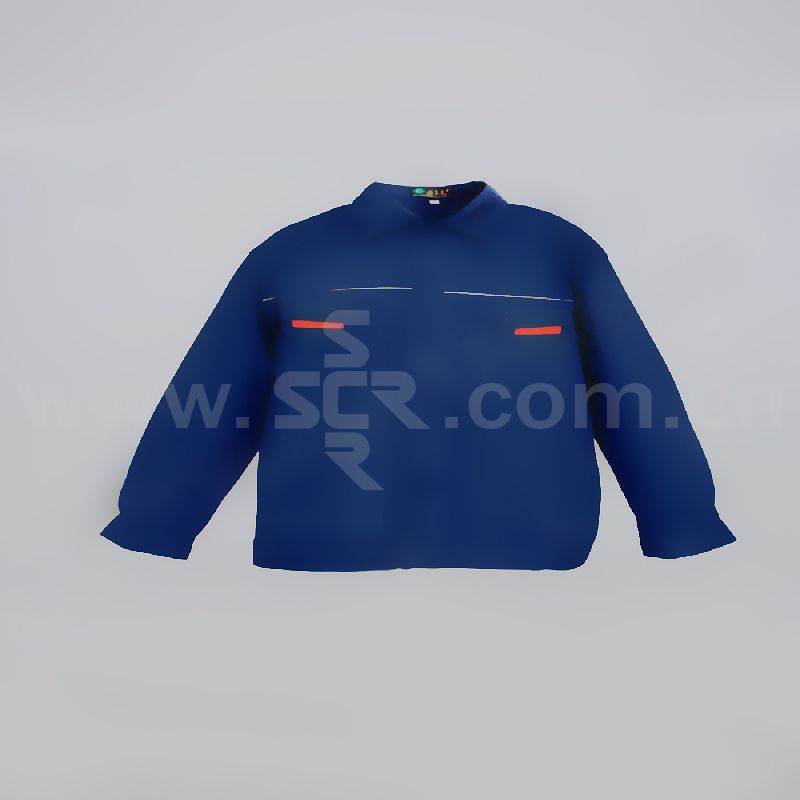 ·夏季纯棉工作服套装,长袖,深蓝色。