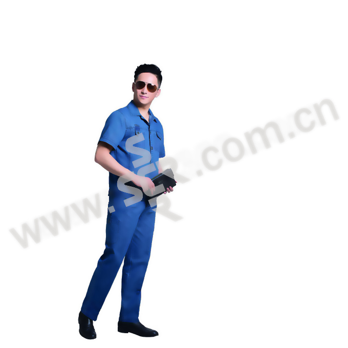 HUADIAN/花典服饰 夹克式薄型牛仔短袖工作服套装 JH-5 S(160) 靓蓝色 1套