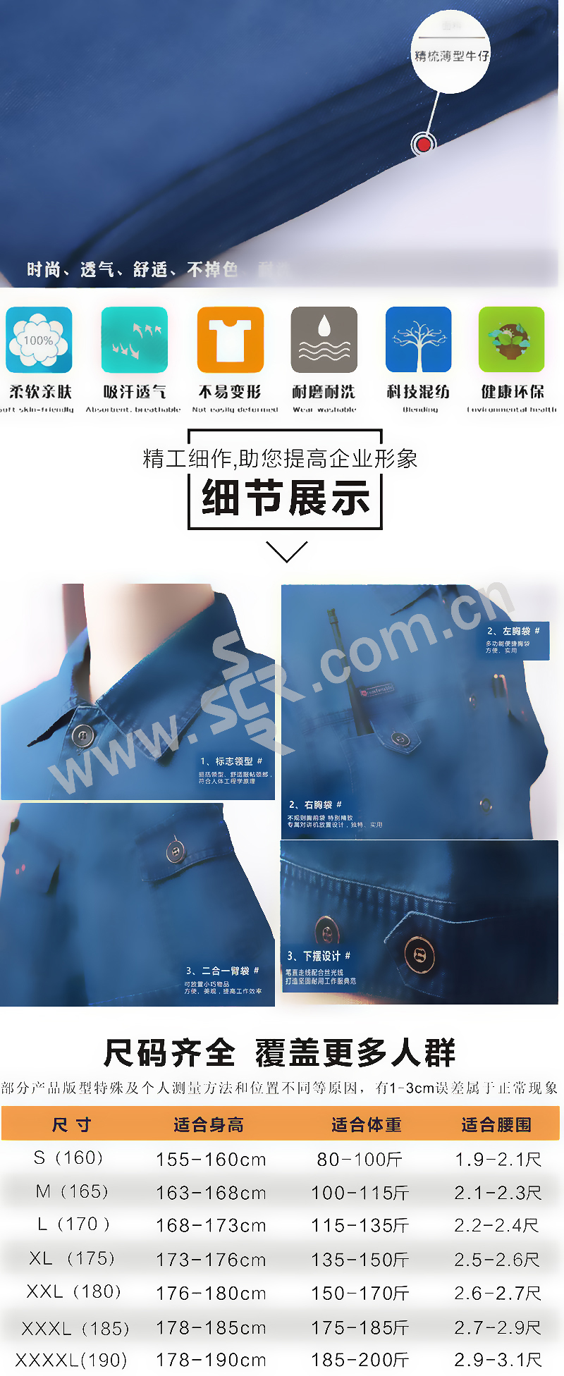 ·夏季工作服,劳保服,职业装,长袖工作服,牛仔工作服