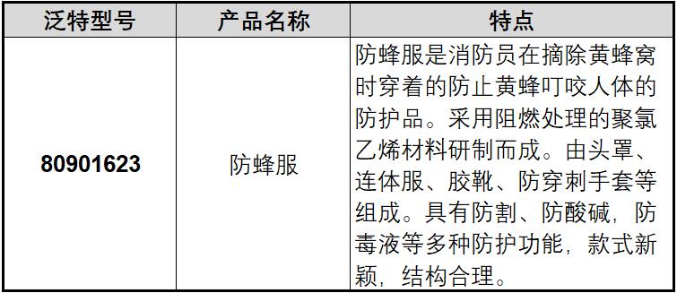 ·防蜂服是消防员在摘除黄蜂窝时穿着的防止黄蜂叮咬人体的防护品。采用阻燃处理的聚氯乙烯材料研制而成。由头罩、连体服、胶靴、防穿刺手套等组成。具有防割、防酸碱,防毒液等多种防护功能,款式新颖,结构合理。