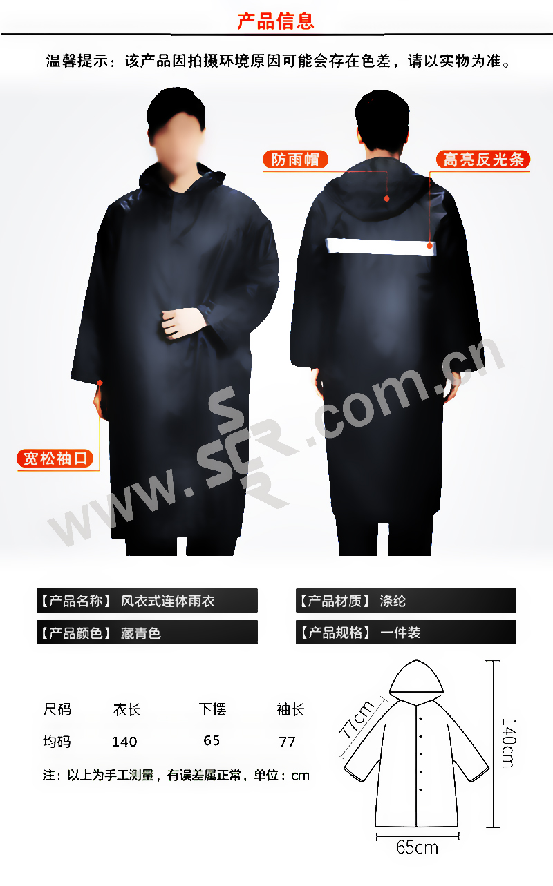 SAFEWARE/安赛瑞 风衣式牛津布雨衣 12326 均码 藏青色 1件