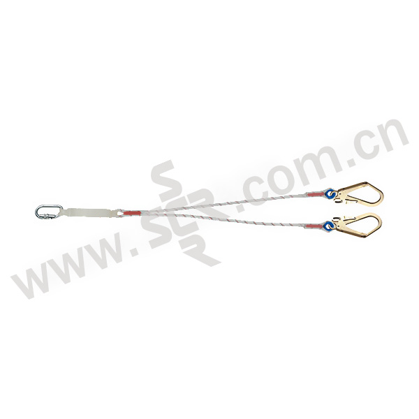 ·LDAD夹芯双大钩减震绳·符合EN355标准·11MM静力绳,配有1个钢制O型钩M10和2个钢制开口50MM自动锁扣M53·Y型结构,用于攀爬及平行保护·绳长度<1.2M,缓冲包全部打开的长度在3M以内