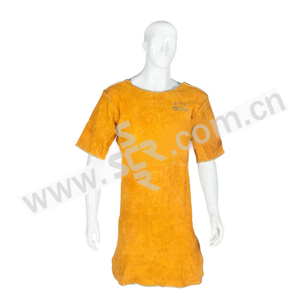 ·由耐用、柔韧的牛二层金黄色颈皮制成,具耐磨、隔热和抗火性能·全皮短袖围裙,可全面保护身体前面部分及手臂·可调节的弹性带扣系统,保持贴身及活动自如,腰部由易穿插及可调节大小的插扣连接,穿着方便,适合不同体型工作人员,对使用者进行全方位的保护·尺寸:61cm*100cm