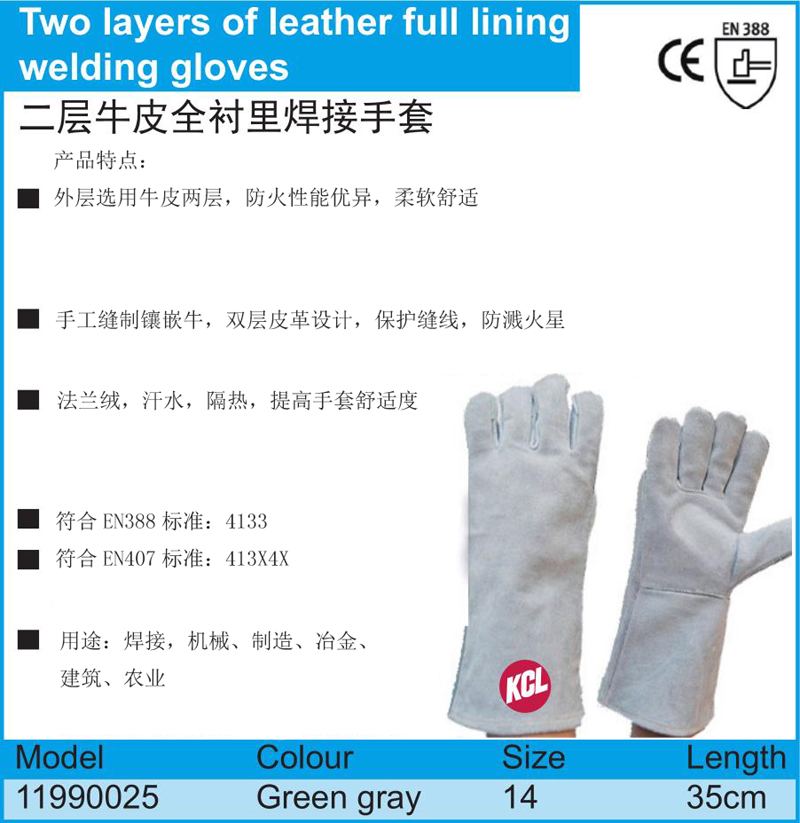 二层牛皮全衬里焊接手套