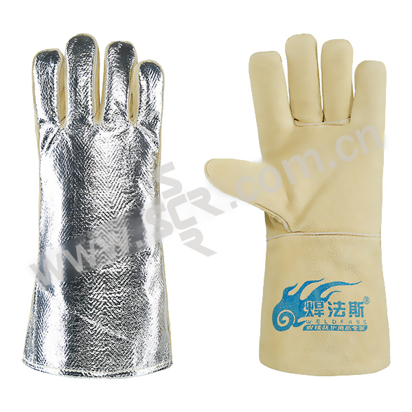 WELDFASS/焊法斯 土黄色反光铝电焊手套 11-19212 均码 1副