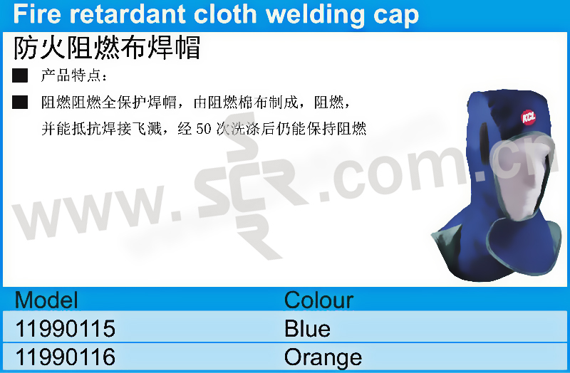 ·防火阻燃全保护焊帽,由阻燃棉布,具有阻燃性,并能抵抗焊接飞溅,经过多达50次洗涤后仍能保持阻燃性
