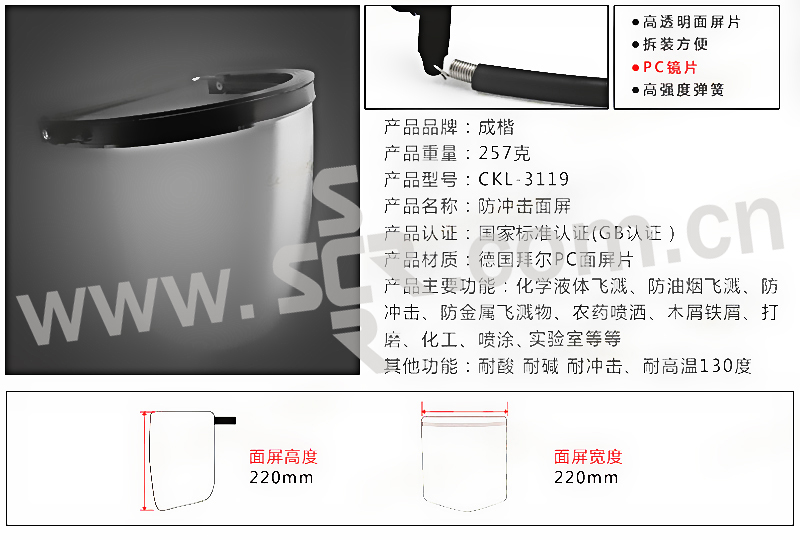 CKTECH/成楷科技 高空面罩安全帽配套面屏 CKL-3119 需搭配安全帽使用 1套