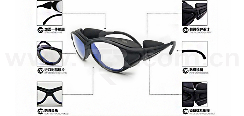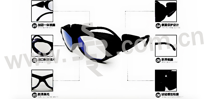 ·这款激光安全眼镜是反射式的,可全方位防护特定波段1064NM的激光和强光
