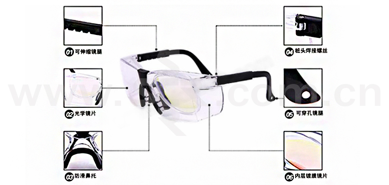 ·这款激光安全眼镜是反射式的,可全方位防护特定波段1064NM的激光和强光