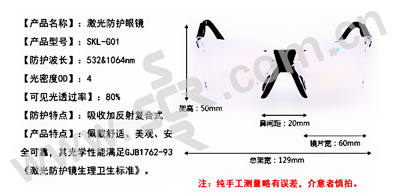 ·其光学安全性能完全满足GJB1762-93《激光防护镜生理卫生标准》