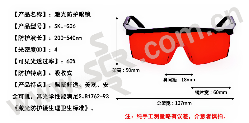 ·其光学安全性能完全满足GJB1762-93《激光防护镜生理卫生标准》