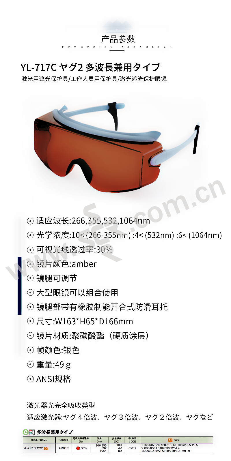 YK/山本光学 多波段激光防护眼镜 YL-717C NDYAG2 266nm/355nm/532nm/1064nm OD6 1副