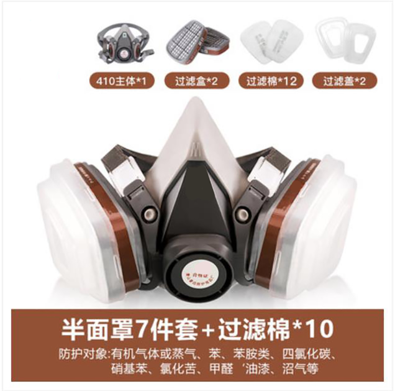 半面罩7件套(410主体×1、过滤盒×2、过滤棉×12、过滤盖×2)、过滤棉×10