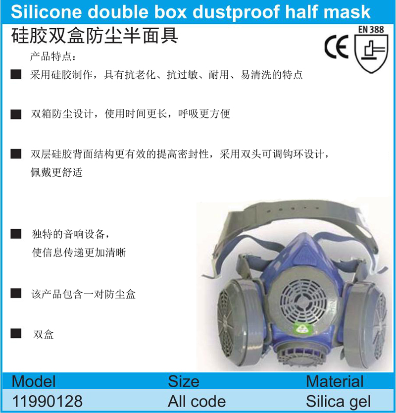 英文名称:  Silicone double box dustproof half mask