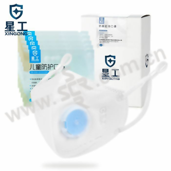 XINGONG/星工 KN95儿童口罩防雾霾防尘防花粉独立包装 XG8532V 耳戴式 带阀 蓝色 5只 1盒