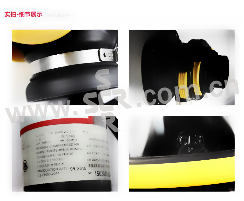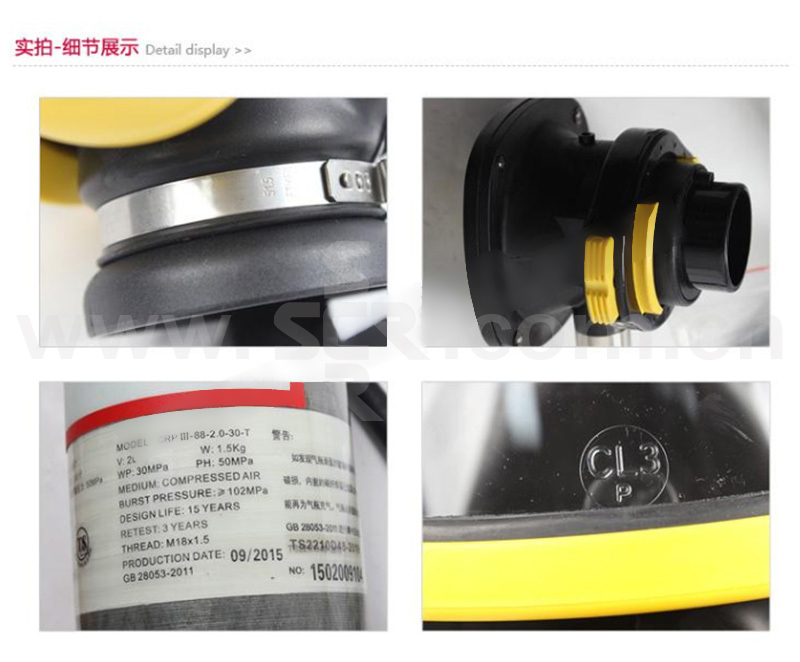 · 恒流式逃生空气呼吸器,带有1个2升300巴带压力表气瓶,可使用约15分钟