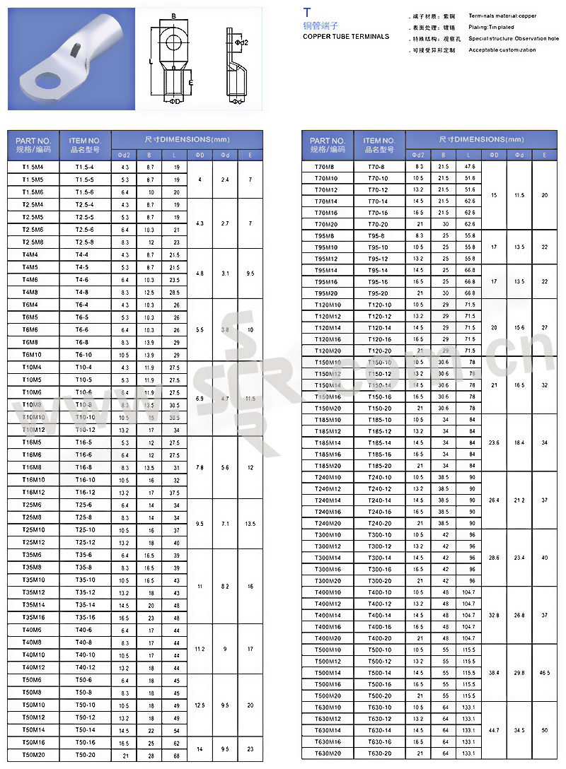 LYLUG/连优 T系列铜管端子 T1.5-4 19A 1个