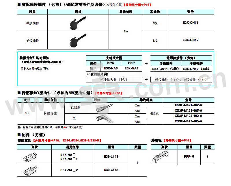 · E3X-A用8回转调整旋钮即可进行微调整的通用型;带有应差可变旋钮;使用脉冲亮灯进行20μs的超高速应答;以绿色光源可检测微妙的色差。 E3X-NA灵敏度可调式光纤放大器。 直接观测光量变化的LED入光量级显示;节省配线接插件、省空间;采用光通信方式,可防止互相干扰,可密集安装(最多5台)。 E3X-DA-S/MDA 数字式光纤传感器。 将受光量调整到最佳值,搭载“光量调整(最佳光量设定)功能”;通过采用新开发的4元素LED+APC(Auto Power Control)回路,能实现长期稳定检测。 节省配线接插件;每一频道5mm(MDA型);10mm宽的主体上凝聚2个放大器,节省约1/2空间,节省约40%电力;可进行AND/OR控制输出(MDA型)控制输出。 1A3504负荷电源电压DC 30V以下,负荷电流100mA以下(残留电压1V以下)集电极开路输出型,入光时ON/遮光时ON开关转换式。 1A3517、1A3518负载电流50mA以下(剩余电压1V以下),集电极开路输出型,入光时ON/遮光时ON开关转换式。 1A3519、1A3520、1A3521负载电源电压DC 26。4V以下,集电极开路输出型,负载电流50mA以下(残留电压1V以下)。