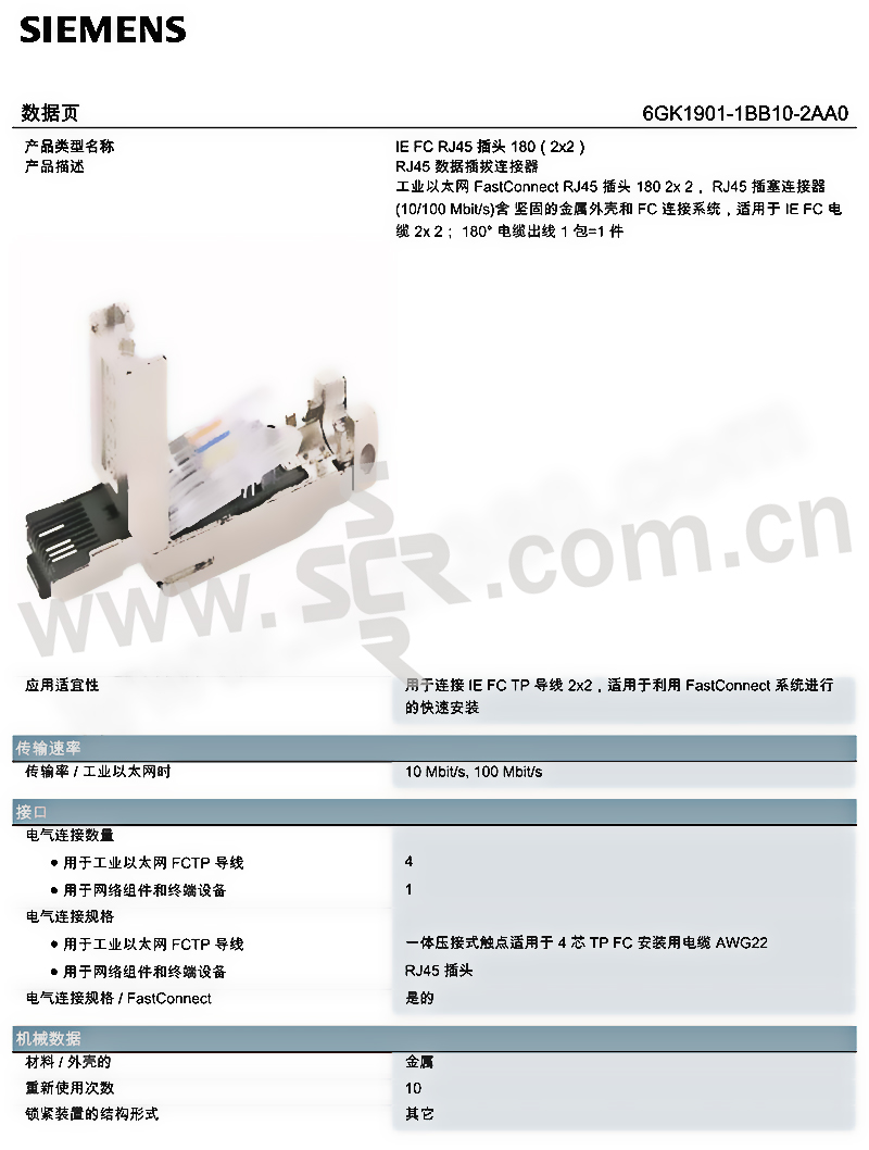 SIEMENS/西门子 RJ45插头 6GK1901-1BB10-2AA0 1个