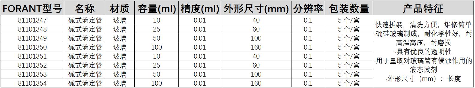 ·快速拆装,清洗方便,维修简单 ·硼硅玻璃制成,耐化学性好,耐高温高压,耐磨损 ·具有优良的透明性 ·用于量取对玻璃管有侵蚀作用的液态试剂 ·外形尺寸(mm):长度