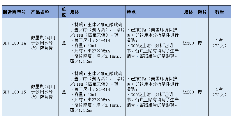 SLAMED 微量瓶(可用于饮用水分析) 隔片厚 40ml SD7-100-15