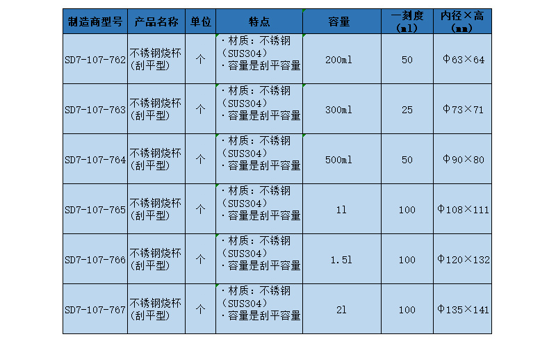 SLAMED 不锈钢烧杯(刮平型) 300ml SD7-107-763