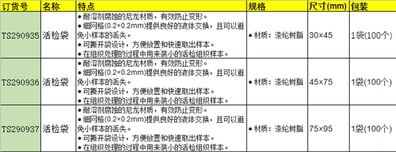 · 在组织处理的过程中用来装小的活检组织样本。