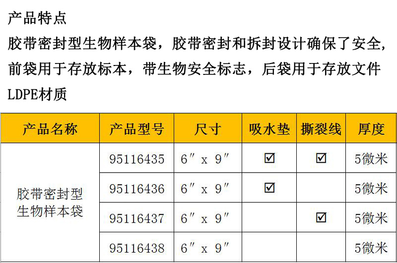 胶带密封型生物样本袋