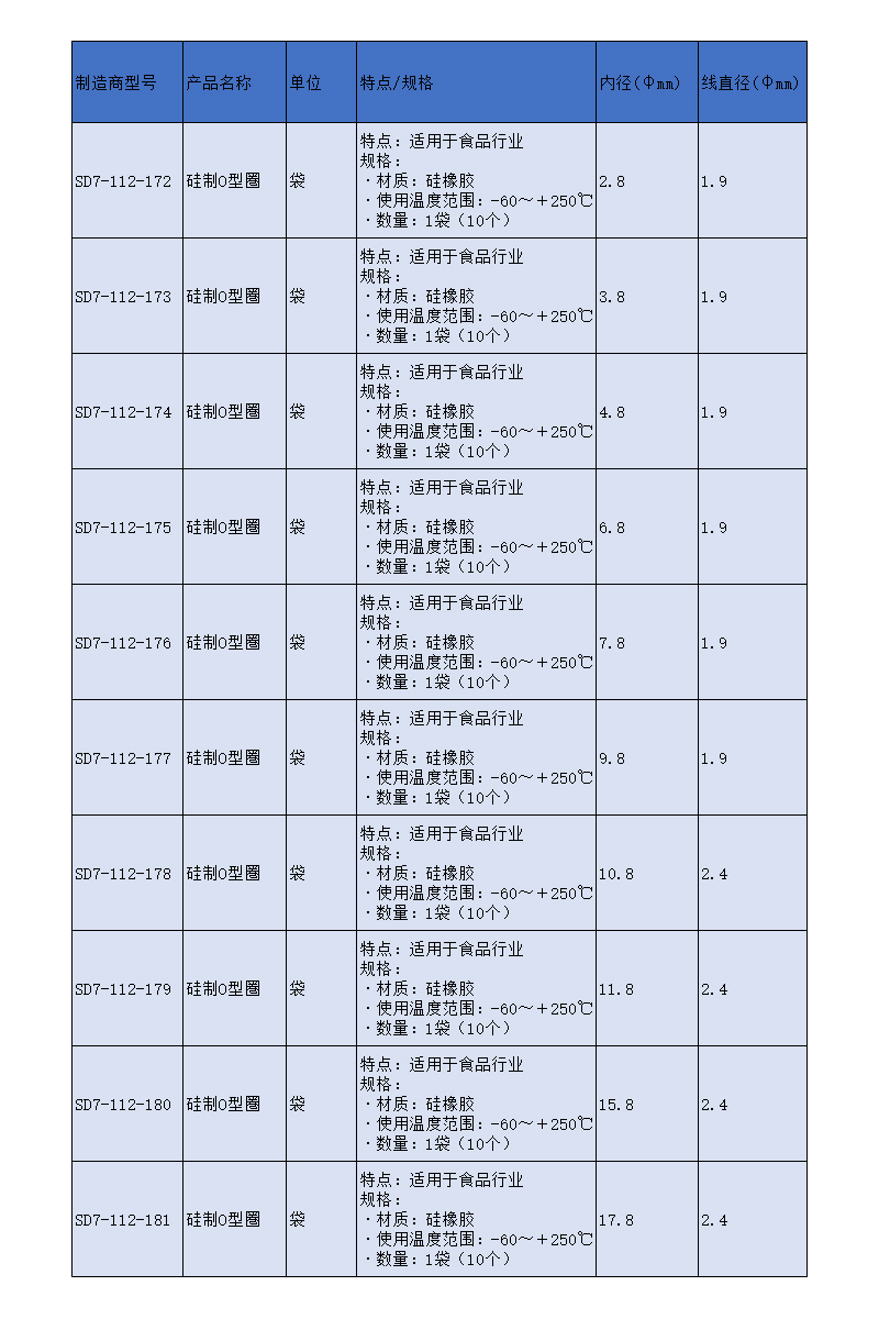 SLAMED 硅制O型圏 内径11.8mm 线直径2.4mm SD7-112-179