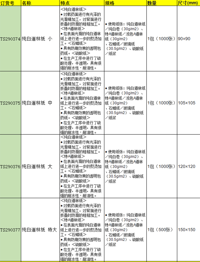 · 在生产工序中进行了硫酸处理,半透明,具有很强的耐水性・耐油性。"