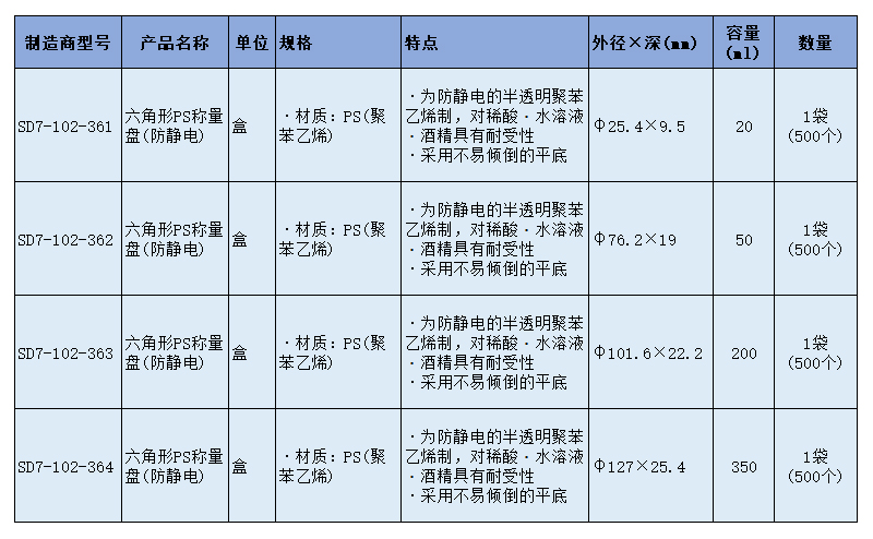 SLAMED 六角形PS称量盘(防静电) L SD7-102-363
