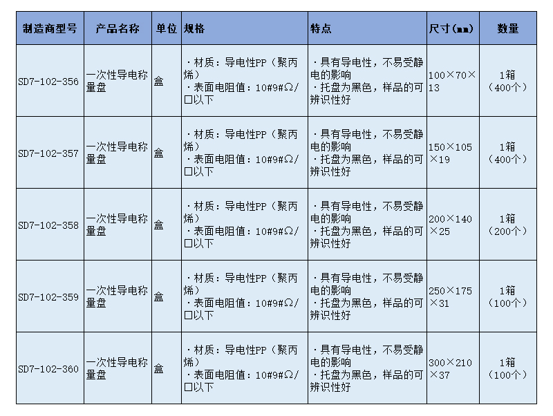 SLAMED 一次性导电称量盘 DT-3B SD7-102-358