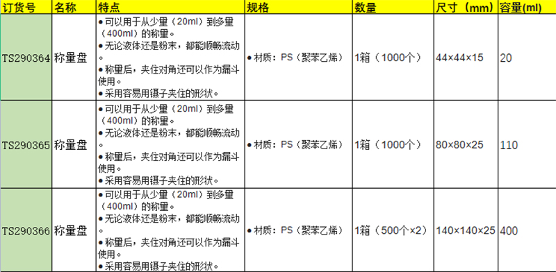 · 可以用于从少量(20ml)到多量(400ml)的称量。 · 无论液体还是粉末,都能顺畅流动。 · 称量后,夹住对角还可以作为漏斗使用。 · 采用容易用镊子夹住的形状。