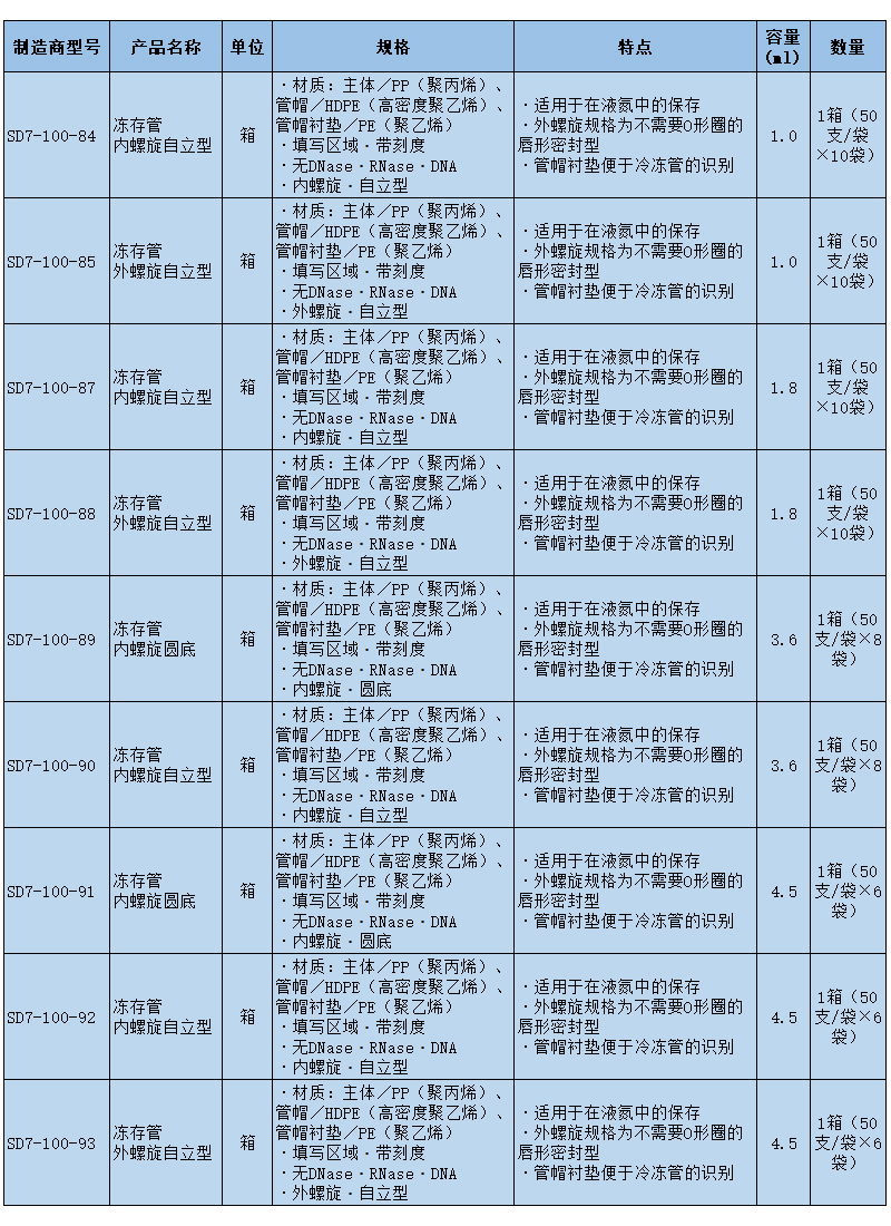 SLAMED 冻存管 内螺旋自立型 1ml SD7-100-84
