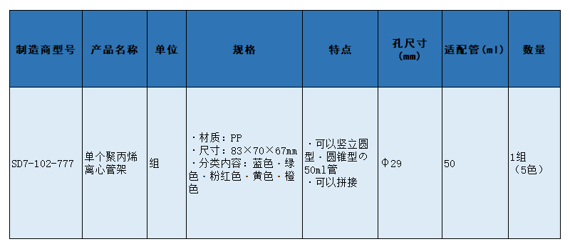 SLAMED 单个聚丙烯离心管架 HS23052 SD7-102-777