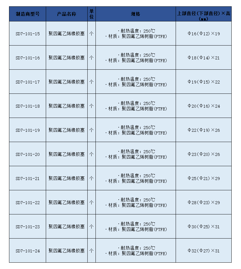 SLAMED 聚四氟乙烯橡胶塞 上部直径(下部直径)×高:φ19(15)×25mm SD7-101-17