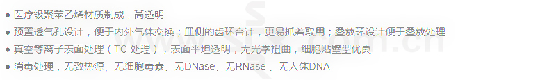 · 真空等离子表面处理(TC 处理),表面平坦透明,无光学扭曲,细胞贴壁