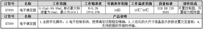 A67003 X7899 X7899 0.01ml-99.99ml,单次最大移液量为10ml,最小为10μl 白色 R=0.2% CV=0.07% 16阶 10℃~30℃ DIN EN ISO 8655 外置控制器,外置磁力搅拌器 18082.47