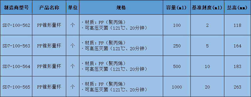 SLAMED PP锥形量杯 1000ml 基准刻度20ml SD7-100-565