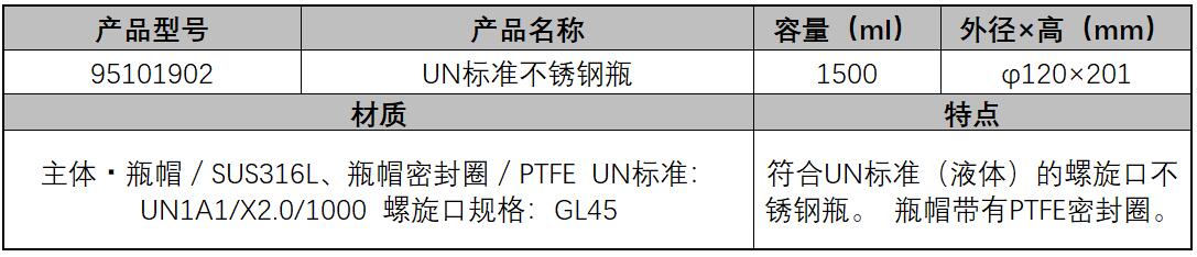 ·符合UN标准(液体)的螺旋口不锈钢瓶