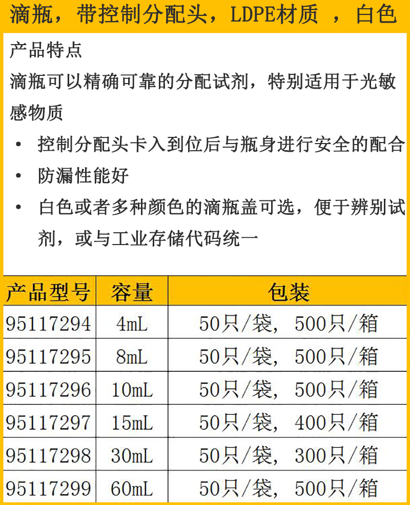 带控制分配头LDPE材质白色滴瓶,
