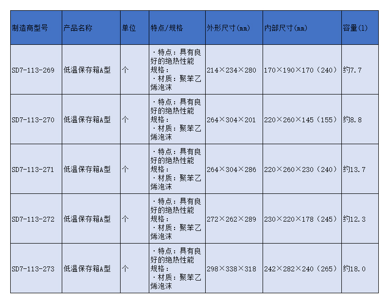SLAMED 低温保存箱A型 7.7L 214×234×280mm SD7-113-269