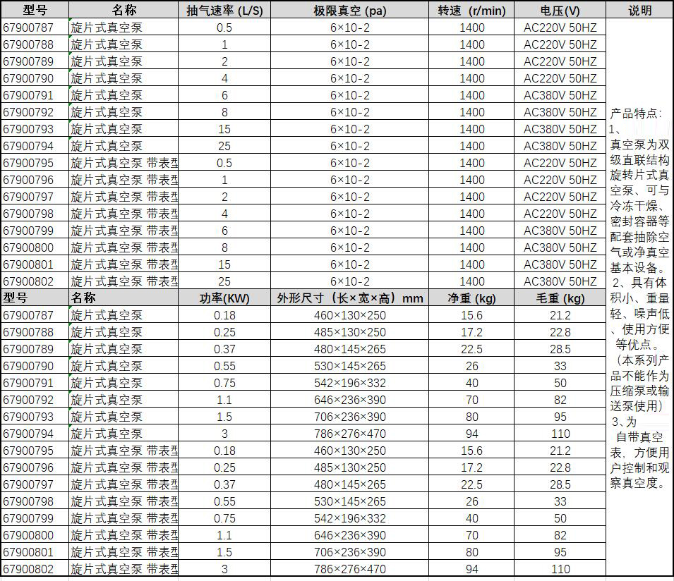 ·自带真空表,方便用户控制和观察真空度。 ·本系列产品不能作为压缩泵或输送泵使用