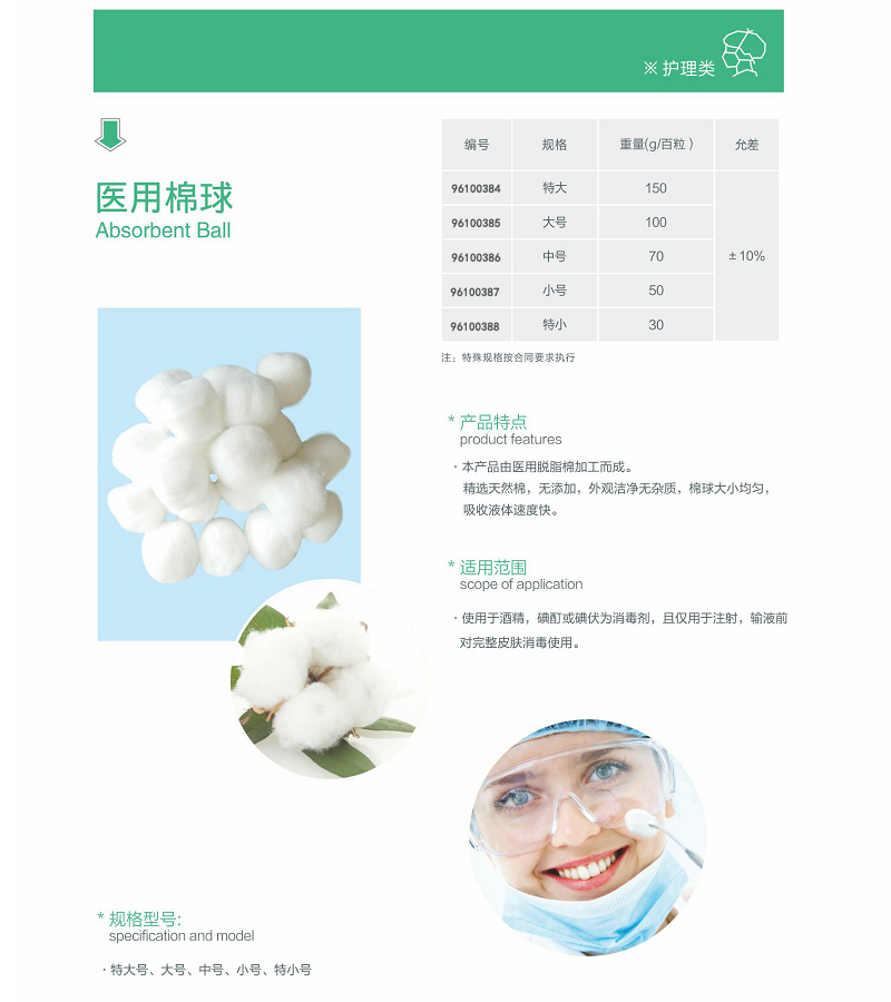 ·本产品由医用脱脂棉加工而成,精选天然棉,无添加,外观洁净无杂质,棉球大小均匀,吸收液体速度快