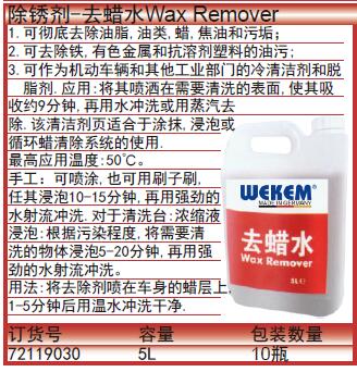 ·用法:将去除剂喷在车身的蜡层上,1-5分钟