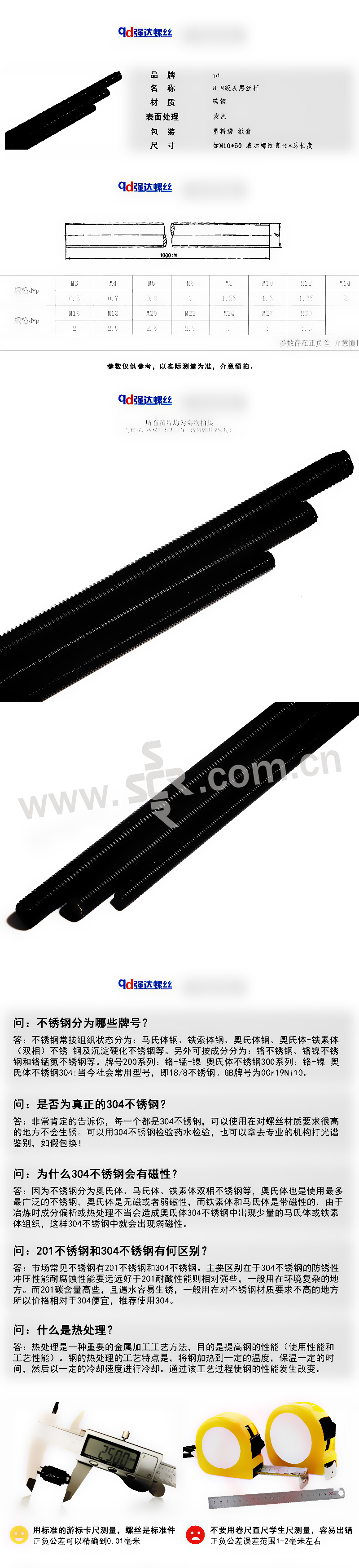 QD/强达螺丝 8.8级发黑丝杆 M6×1米 1个
