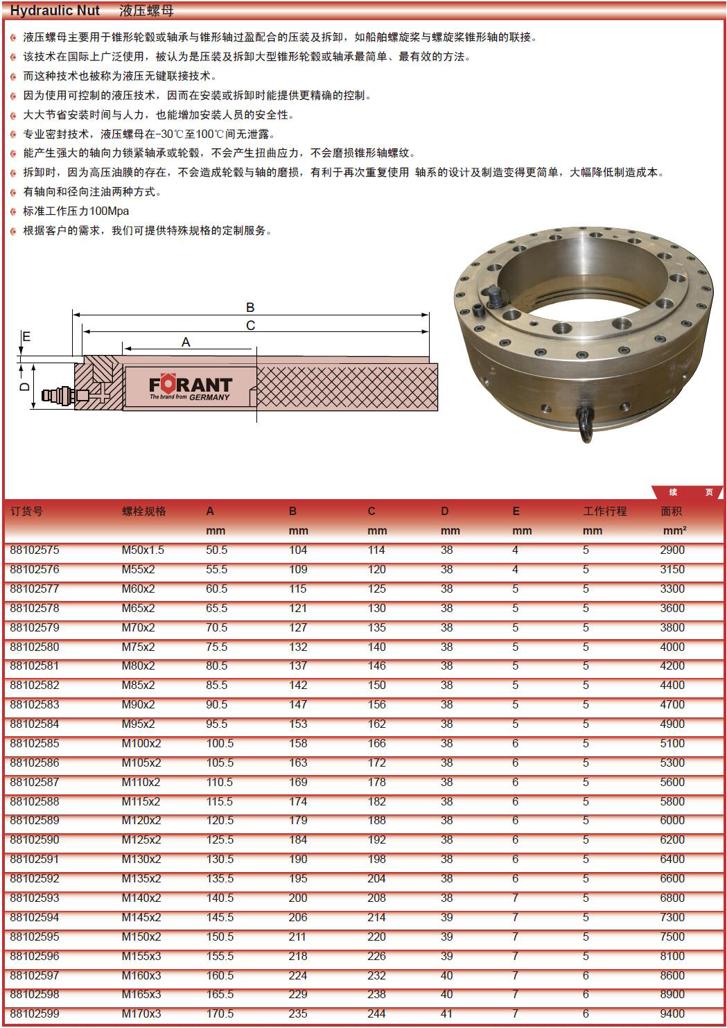 A25941 88102784 液压螺母 165.6KN 100mm 4" 160mm 40mm 125/110mm 2mm 98654.00